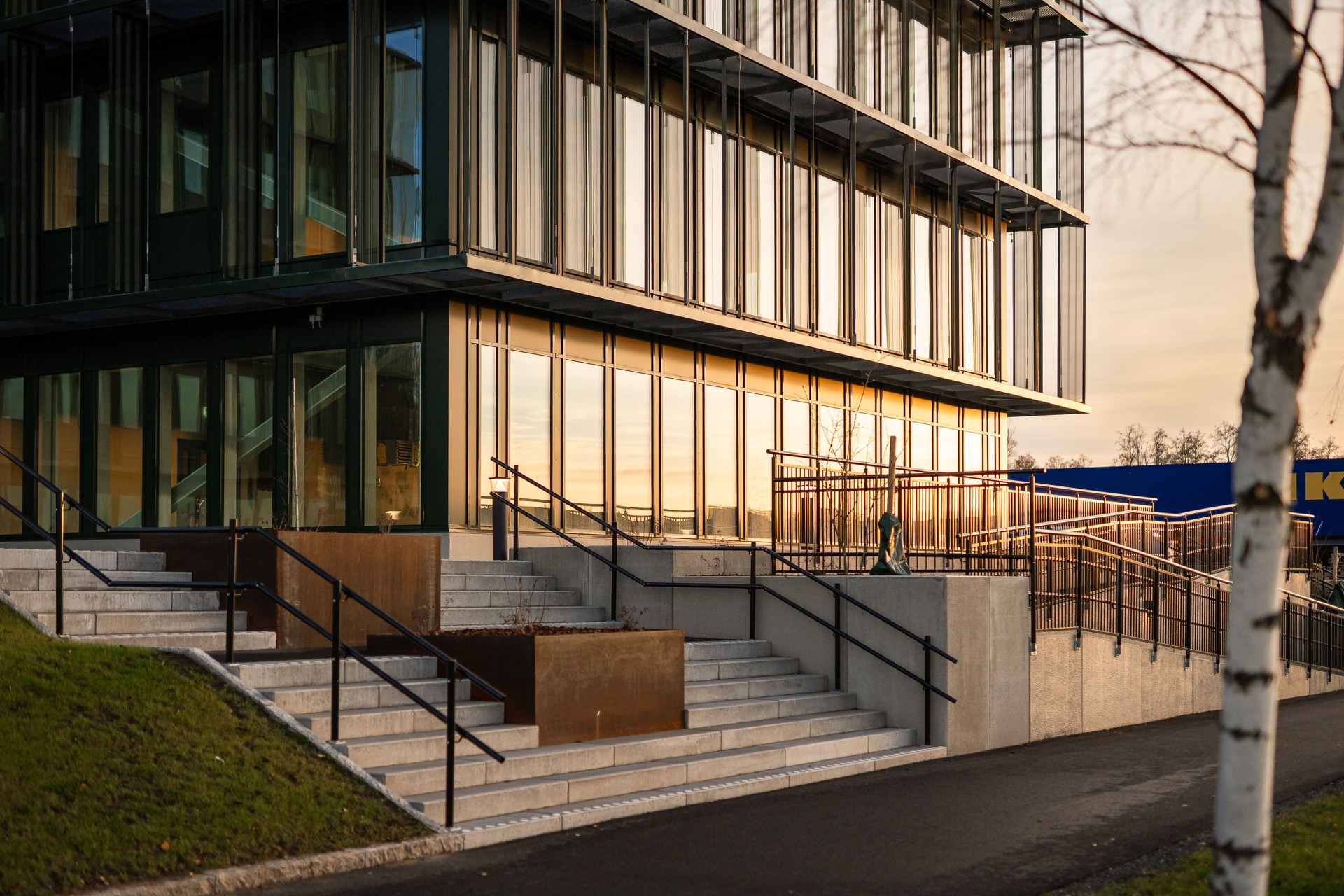 I projektets första etapp ersattes även metall i fasadelementen med limträ, vilket både förbättrade byggnadens U-värde och halverade växthusgasutsläppen från den delen av konstruktionen.